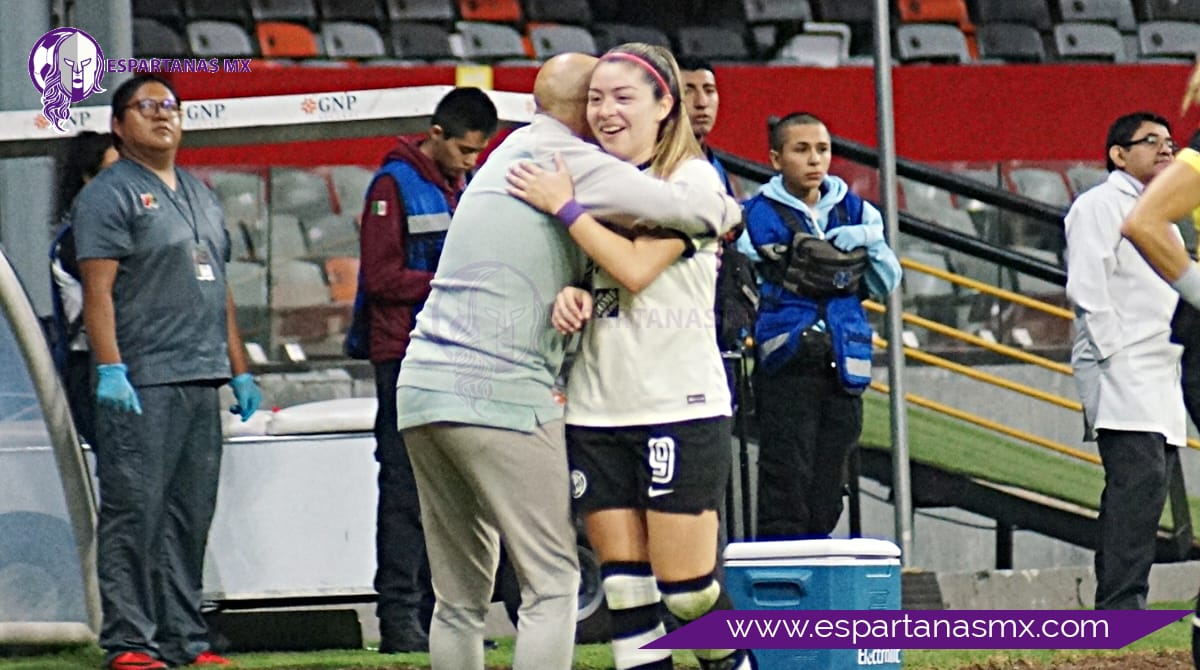 Katty Martínez, delantera del América, marcó un hat-trick en la goleada de 5-0 sobre el Atlas en el estadio Azteca, y además de llevarse el balón del partido a su casa, fue felicitada por el entrenador español Ángel Villacampa, con quien se lleva cada vez mejor.