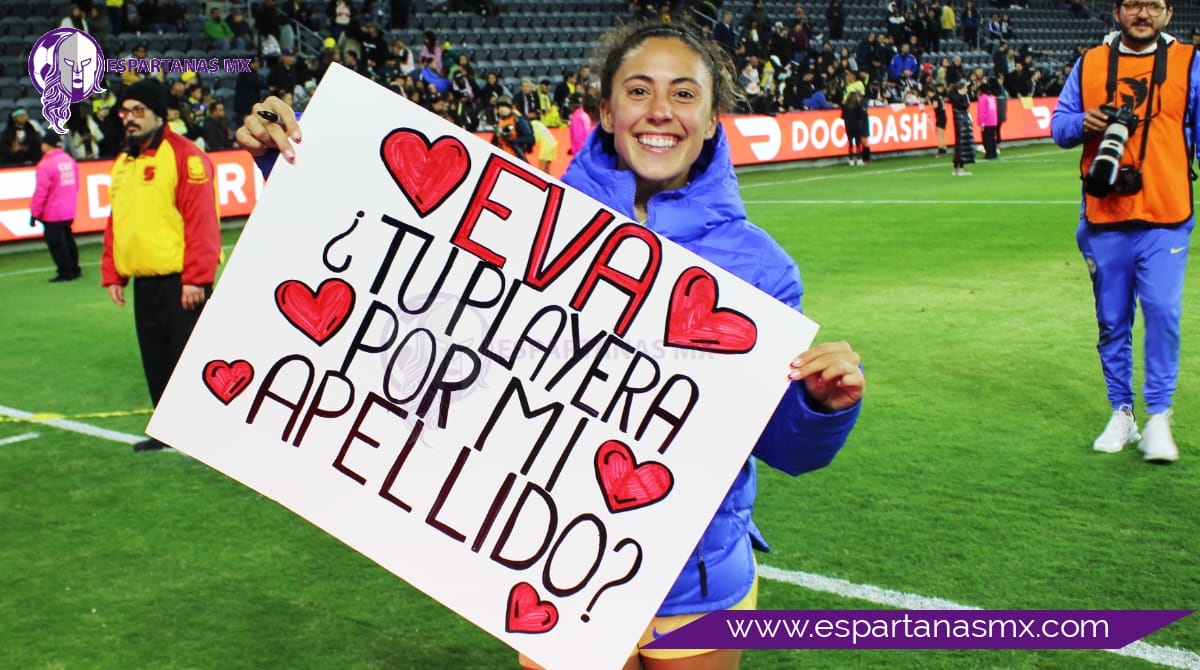 Eva González, mediocampista del América Femenil, se acercó a la tribuna del BMO Stadium al final del partido amistoso ante el Angel City para convivir con sus seguidores durante varios minutos.